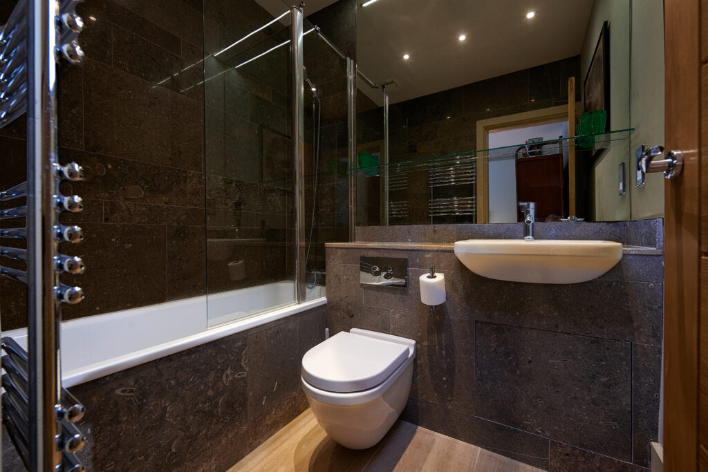 As you enter Rye Croft Cottage, a spiral staircase takes you up to the main living space. Downstairs, you’ll find two double bedrooms and a twin bedroom, each featuring its own en suite bathroom. Upstairs is a large, open-plan kitchen and living area, leading to a garden with expansive views of the valley. Pingle Cottage, just next door accommodates four guests and can be booked alongside Rye Croft Cottage to make space for up to 10 people.